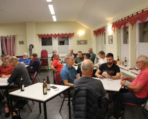 Am 17. Oktober fand das 20. Gröberner Dorfskaten im Haus Grobere statt. 26 Skatspieler und eine Skatspielerin nahmen an diesem Skatturnier mit 2 x 24 Spielen teil. Die Sitzplätze an 6 x 4-er Tischen und 1 x 3-er Tisch wurden ausgelost. Nach der 1. Runde führte Matthias Schmidt mit 1195 Punkten, zweiter war Günther Herrig mit 966 Punkten, Dritter war Franz Gottschaldt mit 953 Punkten. Diese 2 Skatspieler konnten ihr gute Platzierung in der 2. Runde nicht verteidigen. In der 2. Runde erreichte Matthias nur noch 485 Punkte, wurde aber trotzdem Sieger mit insgesamt 1680 Punkten! Ihm wurde der neue Wanderpokal Gröberner Dorfskat überreicht. Dieser tolle Pokal wurde von Edgar Hoffmann gesponsort. Er hat diesen Pokal herstellen und die Sieger der letzten 19 Jahre eingravieren lassen. Dafür recht herzlichen Dank und auch der Zusage, die Sieger der nächsten Jahre eingravieren zu lassen. Zweiter dieses Turnieres wurde Gunther Dürichen mit 1548 Punkten, weil er in der 2. Runde 976 Punkte erreichte. Dritter mit 618 + 826 = 1448 Punkten wurde Michael Stelzner. Die Skatrunden fanden in angenehmer und diskussionsfreudiger Atmosphäre statt. Wir möchten hiermit Emma Stelzner für den Service an diesem Abend mit Getränken, Bockwurst und Brötchen danken. Michael Stelzner, der seit 2006 das Dorfskaten organisiert, hat mit großem Aufwand die letzten 19 Jahre analysiert und ausgewertet, u.a. Punkte vergeben für die Plätze 1 bis 10 im jeweiligen Jahr, die erreichte höchste und niedrigste Punktzahl, die höchste Schnapszahl im + und – Bereich. Er hatte mit seiner Frau Simone viele kleine Preise vorbereitet, die er dann mit viel Spaß und Freude an die einzelnen Skatspieler überreichte. Es war eine tolle freudige Skatspielerrunde! Michael hatte mit Abstand auch die meisten Punkte in der Gesamtauswertung (93) und als Dankeschön für die jahrelange Organisation wurde ihm ein Fass Becks überreicht. Simone hat 19 Jahre lang die Preise eingekauft und schön verpackt, deshalb wurde ihr ein Blumenstrauß nach Hause gebracht. Den Platz 2 der 19 Jahre-Auswertung belegte Edgar Hoffman mit 72 Punkten und Matthias Schmidt wurde mit 46 Punkten 3. Michael hatte auch als Einziger in den 19 Jahren ein Grand Ouvert. Wer so viel Glück beim Skat hat, muss es auch im Lotto 6 aus 49 haben, deshalb wurde ihm ein Lottoschein mit den Zahlen von seinem Glückstag überreicht. In diesem besonderen Jahr wurden die Skatspieler persönlich eingeladen, die auch in den letzten Jahren dabei waren. Bedingung für die Teilnahme am 20. Dorfskaten war außerdem, ein schön verpacktes Geschenk im Wert von mindestens 20 € mitzubringen. Die Vergabe der Preise erfolgte per Los. Als Erster konnte der Platz 20, Paul Gottschaldt (669 Punkte), ein Los ziehen. Es war ein großer Sack Grillkohle. Danach konnte Matthias als Sieger ein Los ziehen, dann Gunther usw. Es waren viele tolle Preise dabei, u.a. Gutscheine für 1 Hase, 1 Ente, 1 Karpfen, 50 € TTM, 40 € Tanken bei ARAL, 30 € Massage, Einkaufen in Meißen, Wellenspiel und viele schön verpackte Präsente sowie Sachpreise zum Essen und Trinken. Es war ein wunderschöner Abend, der allen lange in Erinnerung bleiben wird. Die letzten sind nach 2 Uhr nach Hause gegangen. Wir danken hiermit den Organisatoren Familie Stelzner, Franz Gottschaldt, Jürgen Riesner und allen, die aktiv zur Gestaltung dieses Skatabends beigetragen haben.