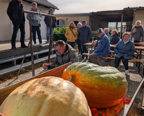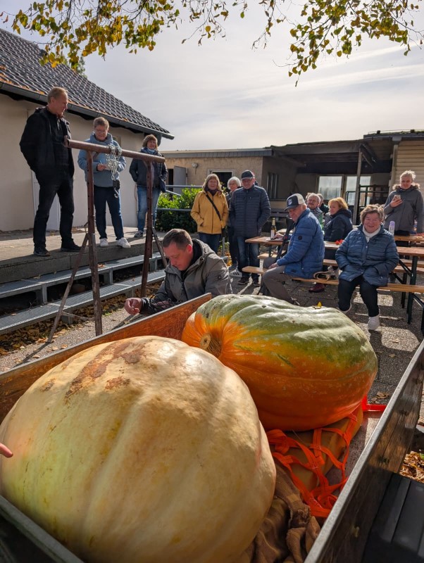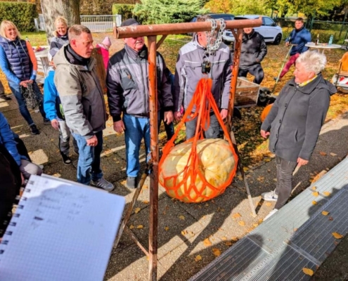 Jeder einzelne Kürbis wurde nun gewogen und das verkündigte Gewicht beklatscht. Zum Teil war es eine ziemlich anstrengende Angelegenheit. Zum Schluss stand der Siegerkürbis mit 81kg fest und machte seinen Gewinner stolz.