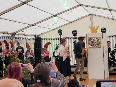 Wenn man unsere fünf Dorfeingänge passiert, durch unsere Straßen und Winkel geht, spürt man sofort etwas, das in der Hektik der Städte verloren zu sein scheint: Zugehörigkeit und Geborgenheit. Hier tragen die Menschen ihre Traditionen wie einen Schatz im Herzen. Und deshalb waren wohl alle mit so einer Begeisterung bei der Planung und Umsetzung dabei, wurden im Vorfeld alle Gärten geschmückt, Strohpuppen gebaut und allerlei Zeugnisse der Vergangenheit vom Dachboden gekramt, so dass ein wundervolles 4-Tage-Museum – unter Leitung von Jürgen Riesner – entstehen konnte. Besonders schön war zu sehen, wie Jung und Alt zusammengekommen sind – Nachbarn, Freunde, Familien, Kinder und Gäste von außerhalb. Unser heimatlicher Filmabend am Donnerstag und die überraschende Ziehung der nächsten „55-Meter-Tisch-Gastgeber“ läuteten das Dorffest ein. Die jeweiligen Abschnittsbevollmächtigten konnten in den Überraschungseiern ihre entsprechende Jahreszahl finden: