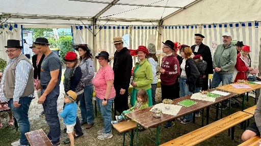 Ein riesiges Dankeschön an alle, die dieses Fest möglich gemacht haben: an die fleißigen Helferinnen und Helfer, die beim Auf- und Abbau unermüdlich mit angepackt haben, an diejenigen, die am Tresen und an ihren Ständen mit ganz viel Herz bedient und gewerkelt haben, an die Musiker der BAND „Schulplatz“, unseren DJ und an die Kulturgruppe, die allesamt für beste Stimmung sorgten, an die Sponsoren, an die vielen Gestaltungskünstler mit Pinsel, Werkzeugkasten und Blumenkorb. Wir sagen Danke für die Yogastunde und das Schauspinnen, allen Transportdiensten, für „Resi, i hol di mit dem Traktor ab“ und dem Traktorshuttle zwischen Festzelt und Kirchturm – und natürlich an euch alle, die dabei waren. Ohne euch wäre dieses Fest nicht das, was es war: ein lebendiges Zeichen für unsere tolle Dorfgemeinschaft. Gemeinsam haben wir gelacht, gefeiert und Momente geschaffen, die uns noch lange in Erinnerung bleiben werden.