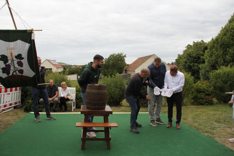 Von allen besonders spannend verfolgt: unsere Whisky-Ausgrabung. Ganze zehn Jahre war es her, dass diese Flasche im Erdreich des Festgeländes verbuddelt wurde, anlässlich des letzten Dorffestes. Und nun wurde es höchste Zeit, die gereifte Rarität zu verkosten. Binnen kürzester Zeit war der begehrte Tropfen – damals gesponsert von Familie Kaßner – bis auf den Grund geleert. Schnell fand sich für diese Gröbern-Tradition ein neuer Sponsor – Familie Altmann – , sodass wir einer guten Reifezeit bis 2030 entgegenblicken können.